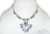 BIJOU FANTAISIE COLLIER METAL COULEUR ARGENT ET STRASS BLEU 020995