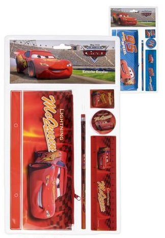 CARS - Set d'écriture - Modèle rouge?Set d'écriture avec 5 accessoires: 1 crayon à papier, 1 taille crayon, 1 règle 15cm, 1 gomme et 1 trousse dimensions 20,5 x 11 cm env.