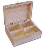 Coffre en bois 4 compartimentsCoffret en bois brut avec 4 compartiments pouvant recevoir des sachets de thé, des épices, des bijoux.