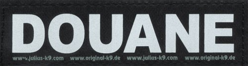 DOUANE - 2 logos petit taille, blancs et réfléchissants pour Julius K9 / Logo - Logo velcro - Logo de rechange pour harnais Power K-9 et IDC (tailles de harnais : "Baby2", "MiniMini", "Mini", "0" et "Baby1" juste IDC) - Format du logo : 3 x 11 cm / petit