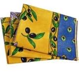 Lot de 3 serviettes. Serviettes de table en polyester, très pratiques pour votre quotidien car elles ne se repassent pas!. Avec motifs provençaux, très colorés, olives et lavandes. 40 cm x 40 cm.