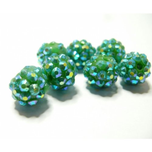 10 perles shambala vert reflet bleuté 12*10mm?10 perles shambala vert reflet bleuté 12*10mm Perles shambalas , en résine recouvertes de strass synthétiques très belle qualité .